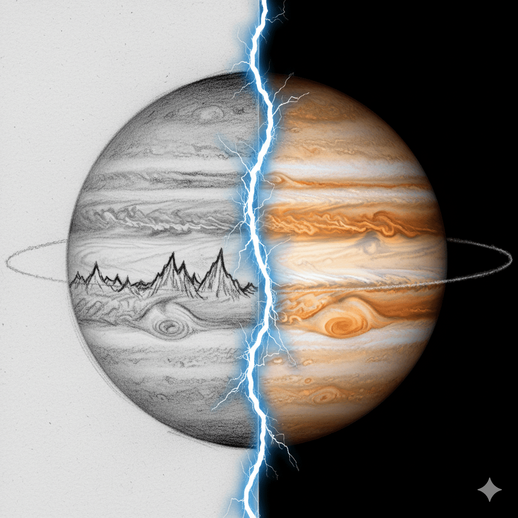 - Translate ambiguous wording (“bands of crystals… maybe like rings”) into more definitive claims (“he predicted Jupiter’s rings”).
